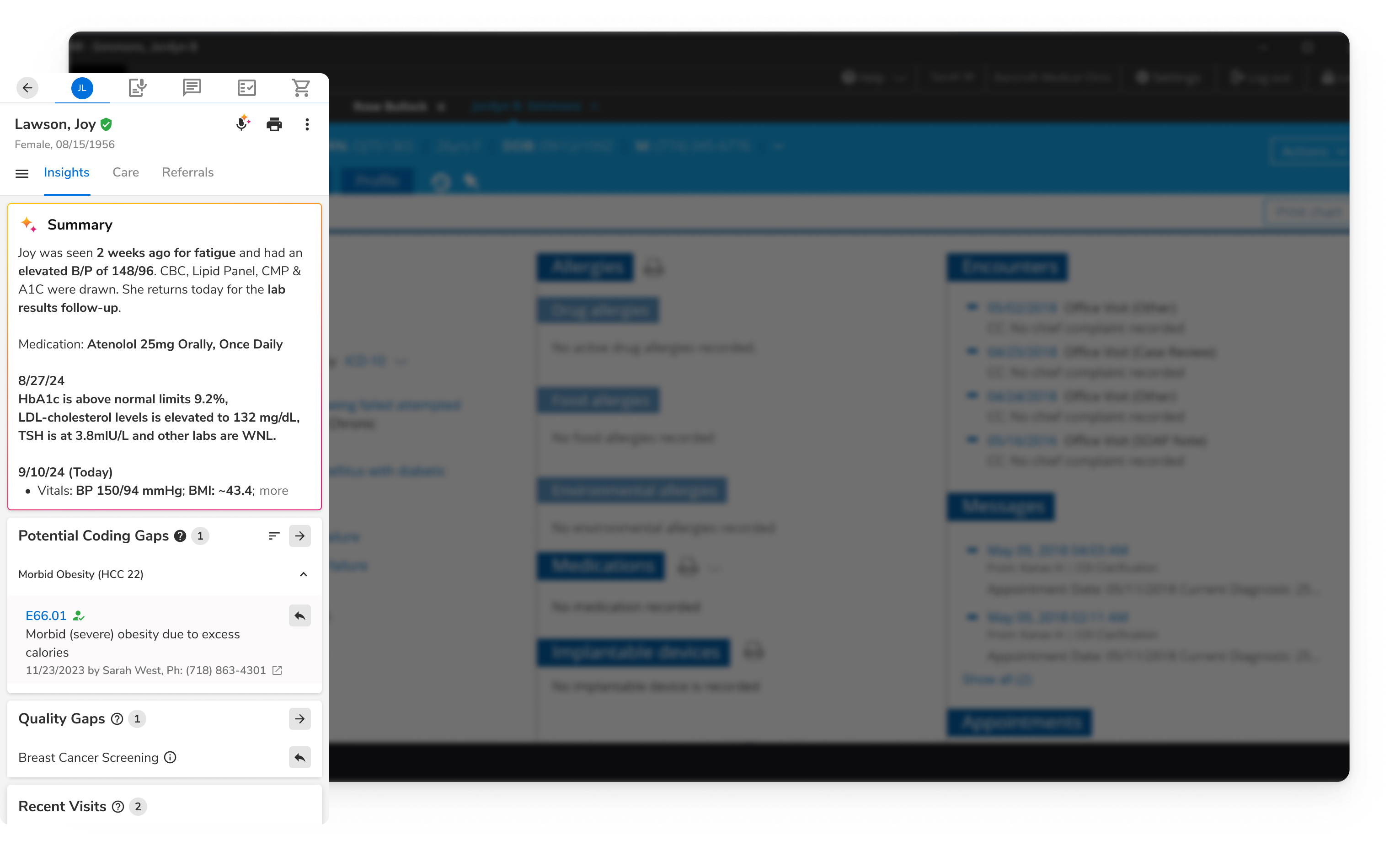 Patient and provider information are aggregated into a single record containing multiple sources of information through Master Data Management functionality, including an Enterprise Master Patient Index, and data curation to remove redundancies. The data at this level is leveraged for application functionality and downstream processing.