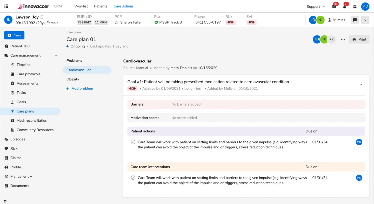 Patient and provider information are aggregated into a single record containing multiple sources of information through Master Data Management functionality, including an Enterprise Master Patient Index, and data curation to remove redundancies. The data at this level is leveraged for application functionality and downstream processing.